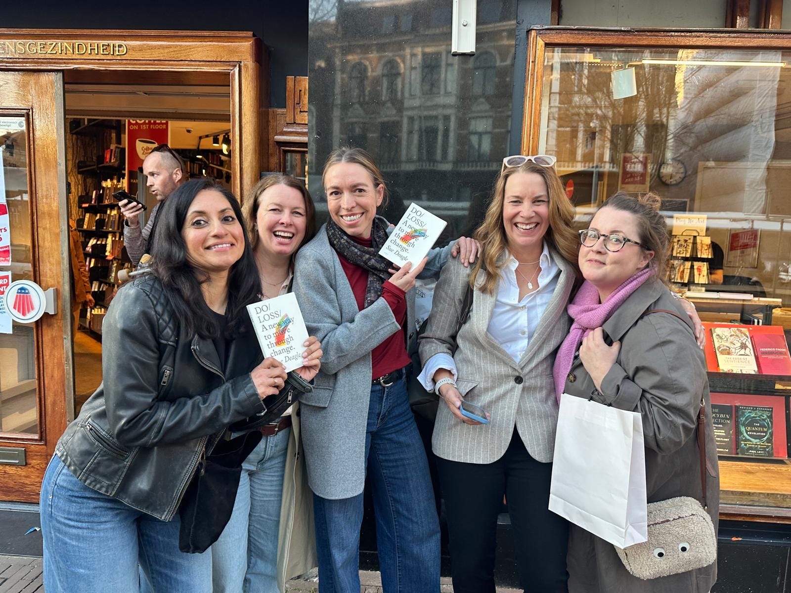 It was mid-tour and there I sat, overthinking my book talk in a few hours. I was chewing my nails and staring out the plate glass window of Petite Lou Brasserie when my friend Rebecca came into view. She was navigating the Thunderdome of Amsterdam’s bike lanes, car lanes, pedestrians, delivery trucks, and dogs, which the Dutch can do in their sleep.